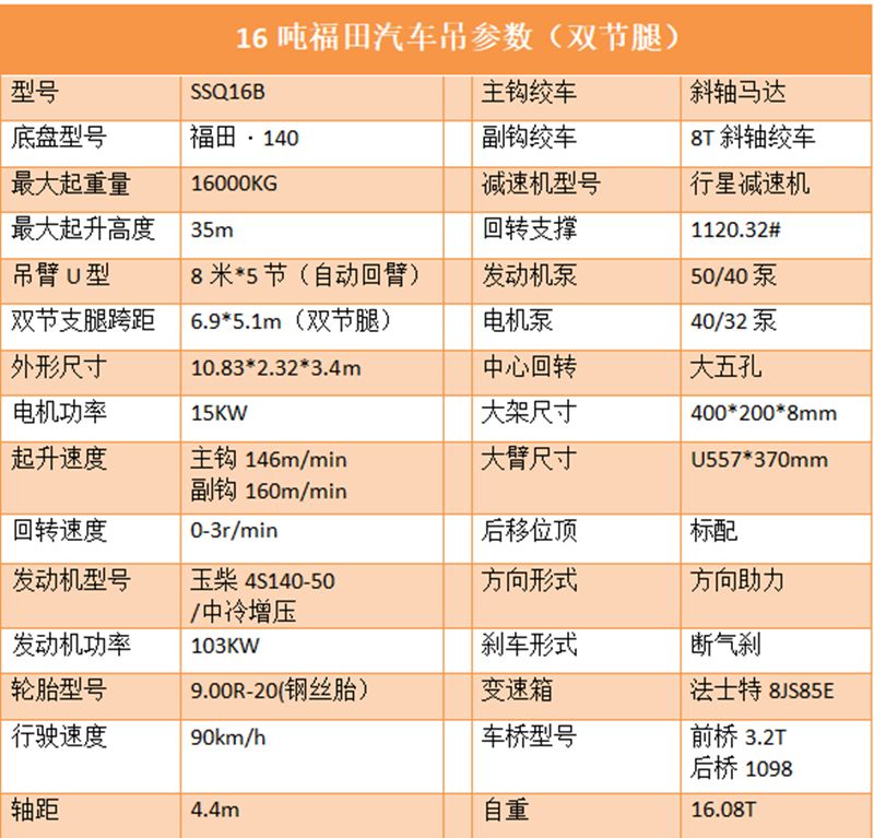 16噸福田汽車吊